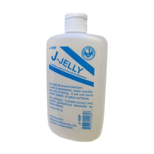 J-Jelly is greaseless, water soluble, and non irritating. It will not harm rubber, plastic, or glass surfaces.