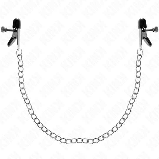 The KINK Flat Chain Nipple Clamps ✦ sleek intensity with a 34 cm flat chain. Adjustable metal clips for controlled pressure and bold BDSM aesthetics.