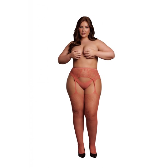LE DÉSIR | Fishnet and Lace Garter belt Stockings | Sunset Glow | Size: XL/4XL
